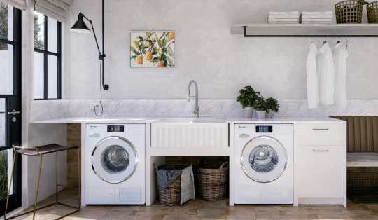 Who likes doing laundry? You won’t mind so much when your laundry room has great looking modern appliances that look great while saving you time. Opt for a convenient laundry sink to soak clothes before putting in the washing machine for those stubborn stains or items that are hand-wash only. Like the bathroom, your basin and taps can be designed to your liking. Make sure your family always has clean clothes with a fully-functional washer and dryer that comes in a variety of sizes to fit all spaces. We also have plenty of front load washers that help save on water.