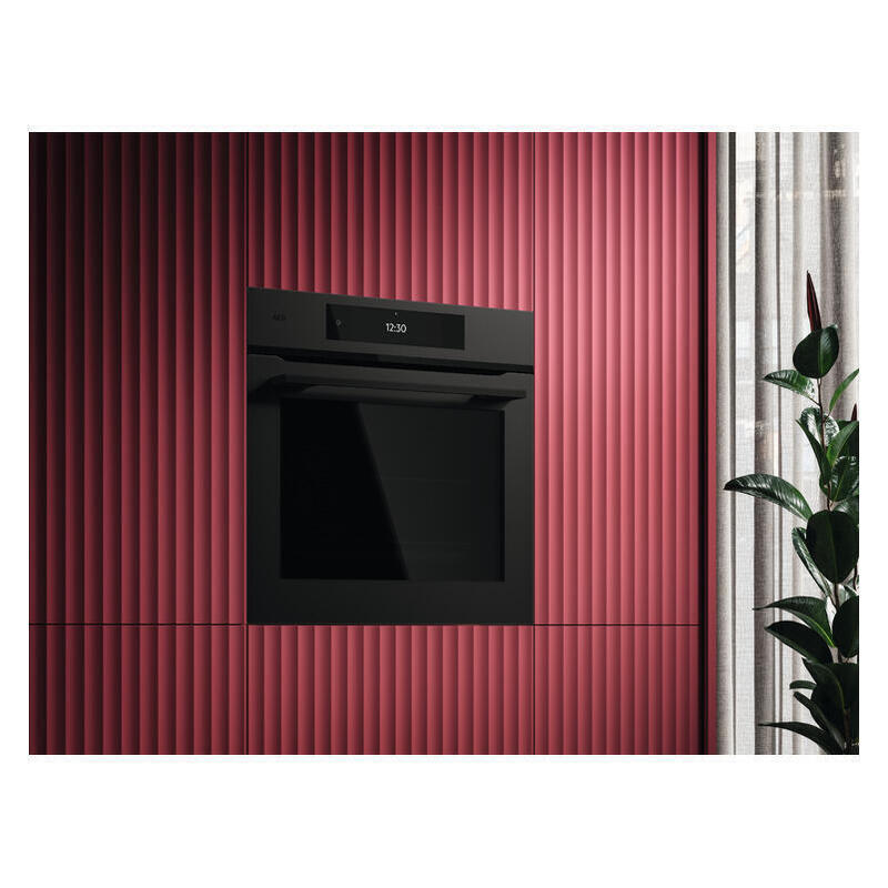The AEG 60cm Built-In Oven with 21 functions in matte black is crafted for those who value precision, convenience, and style in the kitchen. With the advanced CookSmart Touch+ interface, selecting the perfect settings is simple and intuitive, while AI TasteAssist learns and adapts to ensure every dish is cooked just right. Whether you're roasting a Sunday lamb, baking a midweek tart, or crisping chips with the AirFry function, this oven delivers flawless results across a wide range of meals. Assisted Cooking takes the stress out of meal prep by suggesting ideal temperatures and modes, while the integrated Food Sensor monitors internal temperatures for perfect doneness. When it's time to clean up, Pyroluxe Cleaning heats the oven to a high temperature, turning grease and residue into fine ash that wipes away effortlessly. Finished in elegant matte black and designed with easy-to-clean surfaces throughout, this built-in oven brings both form and function into the heart of your home.