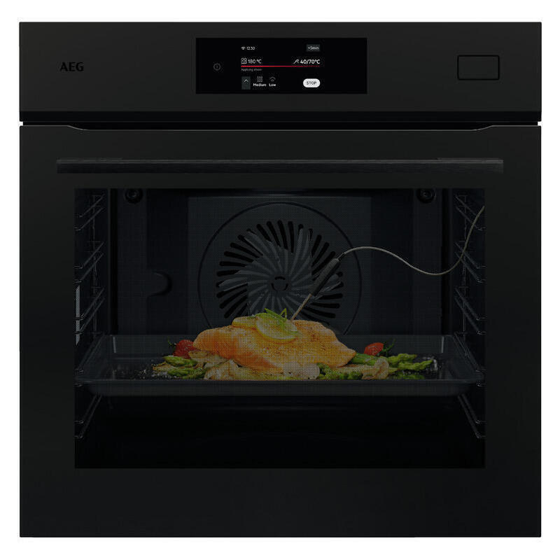 The AEG 60cm Built-In Steam Oven with 24 functions in matte black is a sophisticated kitchen companion that blends cutting-edge technology with elegant design. Featuring SteamPro functionality, it allows you to cook with pure steam, traditional heat, or a combination of both, delivering succulent roasts, perfectly baked breads, and delicate fish with ease. The intuitive CookSmart Touch interface puts a world of recipes and settings at your fingertips, while AI TasteAssist uses smart sensing to adjust cooking parameters for consistently delicious results. AirFry adds a crispy finish without the need for extra oil, and the built-in Food Sensor ensures precise internal temperatures, so meals are never over or underdone. Telescopic runners make it easy to slide trays in and out safely, and the Steam Cleaning function keeps maintenance fuss-free. Wrapped in a stylish matte black finish, this built-in oven doesn?t just look good ? it transforms everyday cooking into something exceptional.