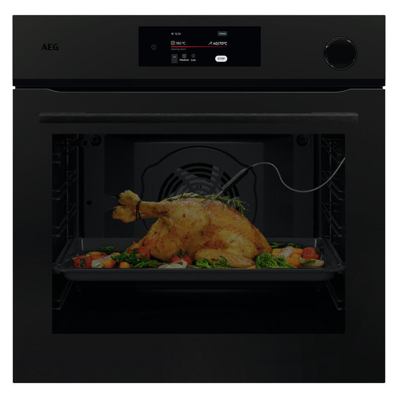 The AEG 60cm Multifunction 22 Steam Oven in matte black blends advanced steam technology with intelligent features for precision cooking at home. With SteamCrisp, it uses a combination of steam and traditional heat to deliver tender interiors and perfectly crisp exteriors, making it ideal for everything from roasts to pastries. The CookSmart Touch interface provides intuitive access to 22 cooking functions, while AI-powered TasteAssist fine-tunes time and temperature for consistently delicious results. A built-in Food Sensor ensures accurate internal readings for meats and bakes, giving you greater control and confidence. For healthier meals, the AirFry function creates crispy textures with minimal oil. Cleaning is effortless thanks to PyroLuxe self-cleaning, which burns away residue at high temperatures. Telescopic runners make it easy to check on your dishes safely, and the oven?s refined matte black finish adds a sleek, modern touch to any kitchen. Designed for cooks who demand performance, versatility and style, this oven makes every meal an opportunity to impress.