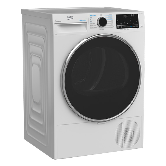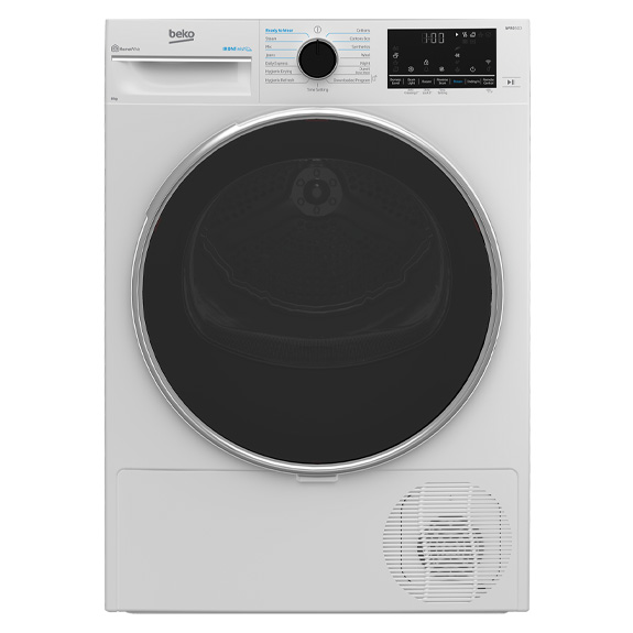 The Beko 8kg Heat Pump Dryer with Steam is a cutting-edge laundry appliance that combines efficiency and convenience. With its generous 8kg capacity, it can handle large laundry loads with ease. The dryer offers 15 programs, allowing you to choose the perfect setting for different fabrics and drying requirements. Featuring an Aquawave Drum, this dryer ensures gentle yet thorough drying by creating a wave-like motion that treats your clothes with care. The OptiSense Drying System further enhances performance by continuously monitoring humidity levels and adjusting the drying time accordingly, saving energy and preventing over-drying. The dryer is equipped with Wifi connectivity, enabling you to control and monitor your laundry remotely using a smartphone or tablet. This feature offers flexibility and convenience, allowing you to start or stop drying cycles and receive notifications when your laundry is ready.