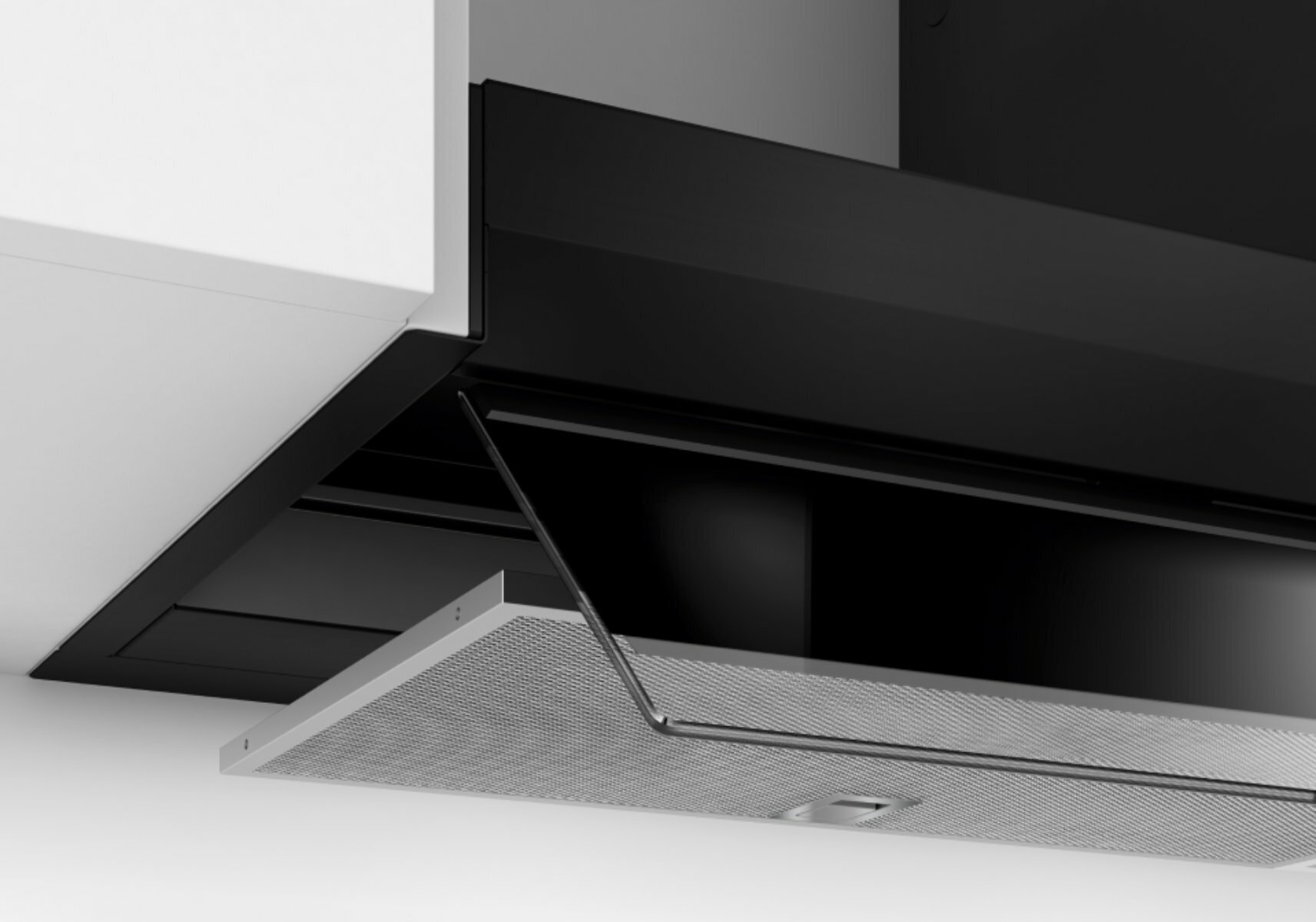 - Seamless integration: thanks to the flush installation design hood is almost invisible in an upper cabinet.