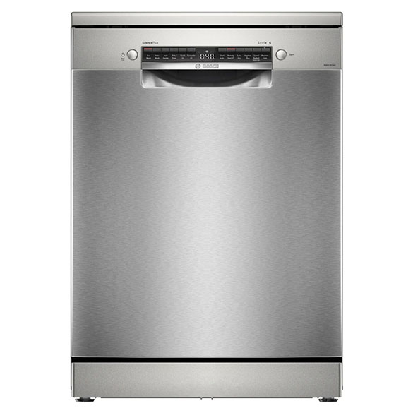 The Bosch SMS6HCI02A Freestanding Dishwasher reduces washing time with perfectly cleaned dishes.