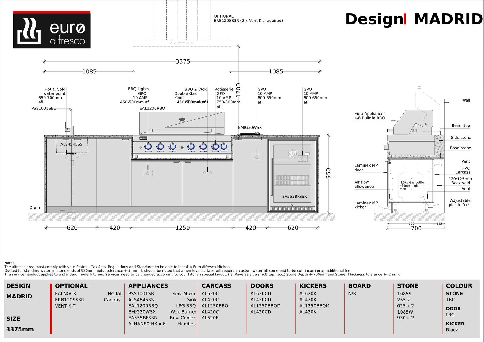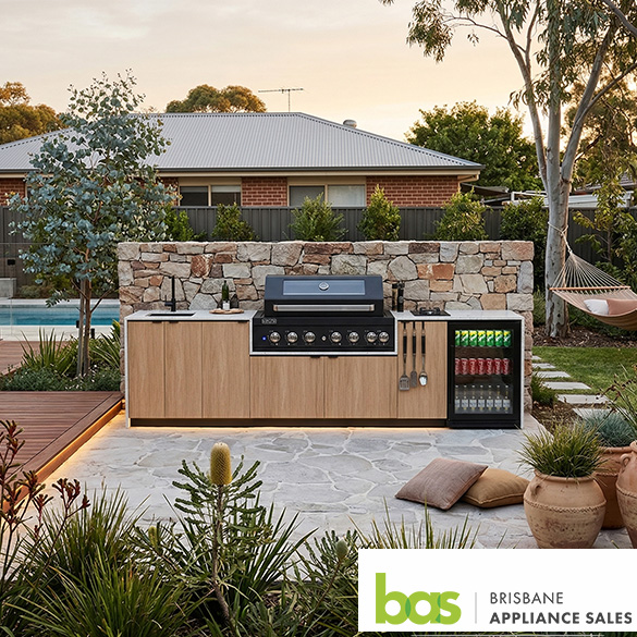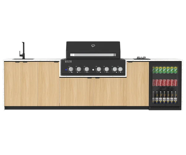 6 burner built-in BBQ and hood (cover included) with the option of LPG or natural gas
