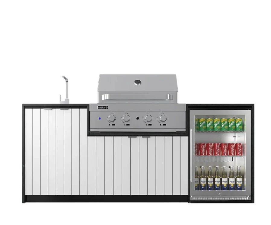 Euro Oxford Alfresco Kitchen - 2235mm wide - 900mm BBQ + Cabinetry + 20mm Stone Benchtop + Mixer Tap + Undermount sink + Single Door Beverage Cooler