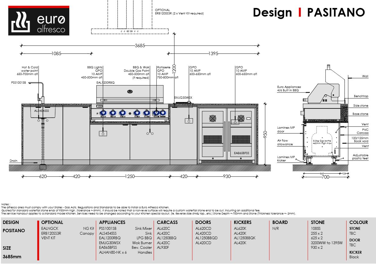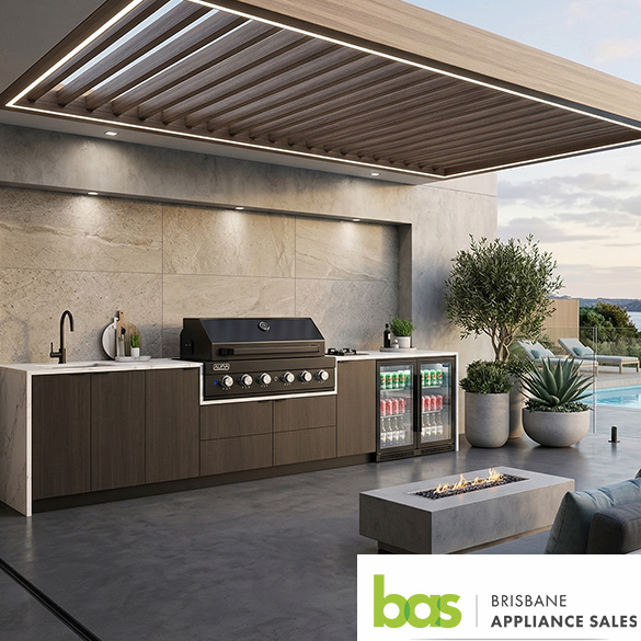 6 burner built-in BBQ and hood (cover included) with the option of LPG or natural gas