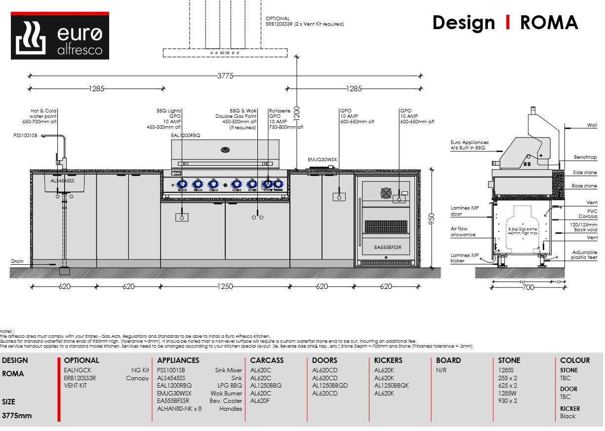 1200mm BBQ + Cabinetry + 20mm Stone Benchtop + Mixer Tap + Undermount sink + Single Door Beverage Cooler + Wok Burner