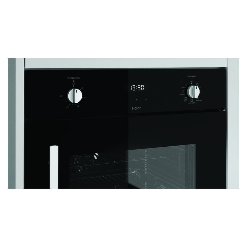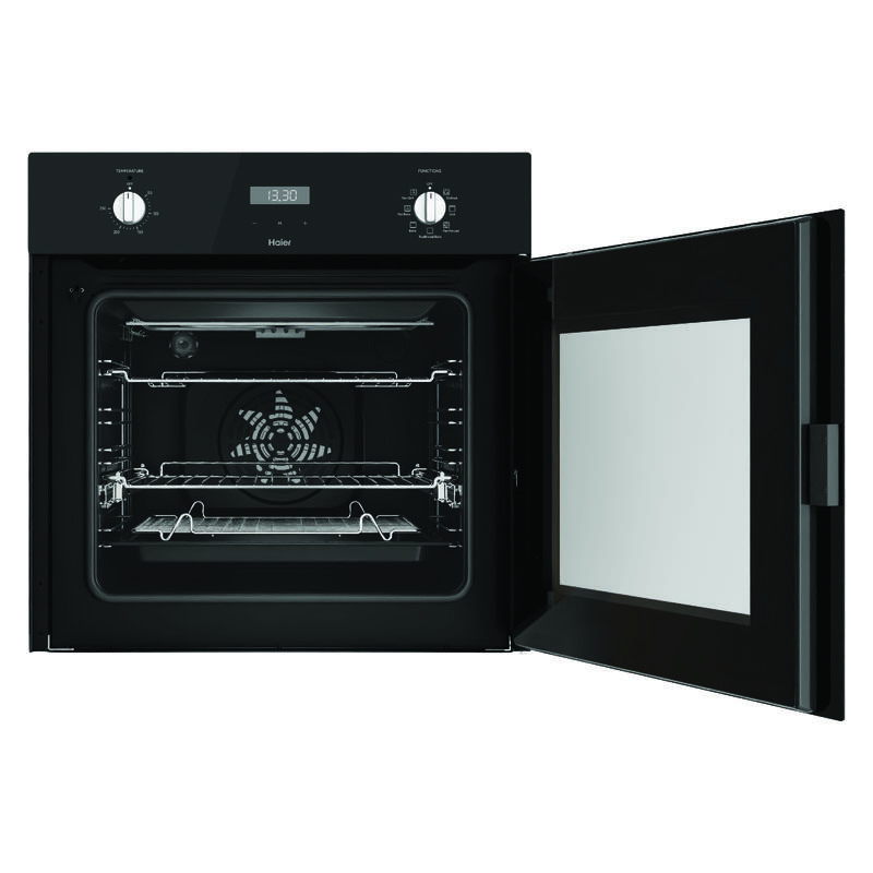 Stylish, practical and built to last, the Haier 60cm 300 Series Built-In Oven in black is a reliable kitchen essential. Offering seven versatile functions, including fan forced and traditional bake, it handles everything from everyday meals to weekend baking with ease. The side-opening door adds ergonomic convenience, and the reversible hinge means it can adapt to your kitchen layout without compromise. Full-extension telescopic runners make it easy to slide trays in and out, while the well-designed control panel with clear labelling ensures you?re always in control. Perfect for home cooks who value efficiency and flexibility, this built-in oven delivers consistent cooking results with a modern, understated look.