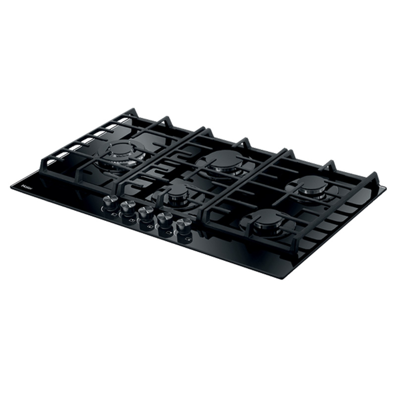 The Haier 90cm Gas on Glass Cooktop in Black is a stylish and functional addition to any kitchen. Featuring five gas burners, including a powerful wok burner, it provides ample cooking space for all your culinary needs. The intuitive dial controls and electronic ignition ensure easy and precise operation. Safety is a priority with the flame failure safety feature, which automatically cuts off the gas supply if the flame goes out. The cast iron trivets offer robust support for your cookware, while the sleek black glass finish adds a modern touch. Measuring 98x860x510mm, this cooktop is designed to fit seamlessly into your kitchen, combining performance with elegance.