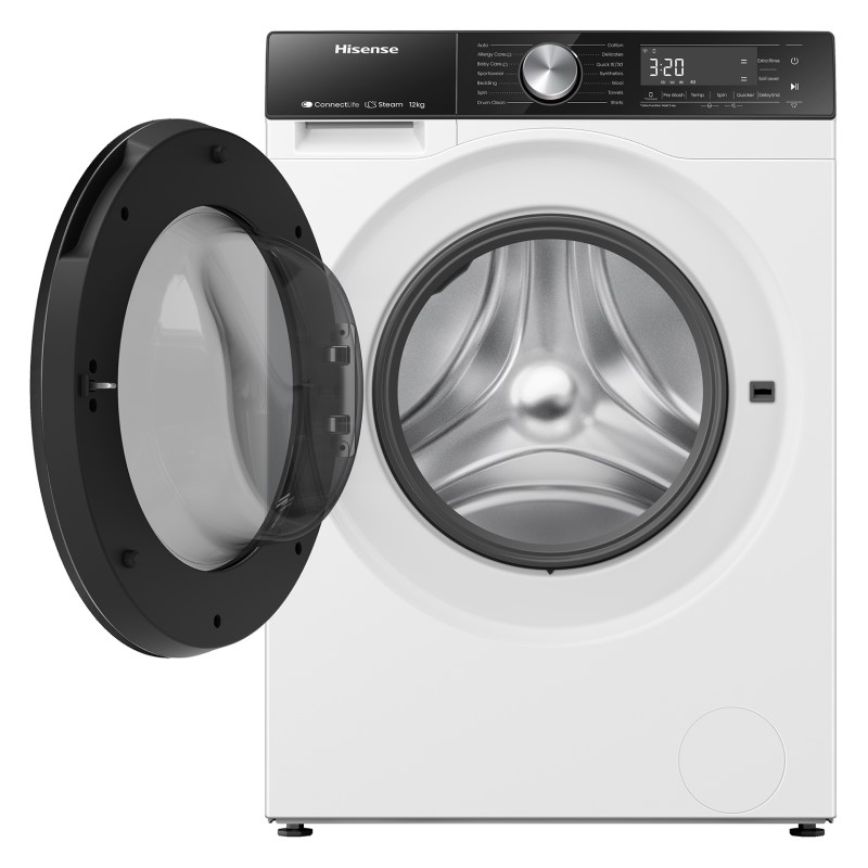 The Hisense 12kg Front Load Washer from the 5 Series is designed to handle large loads with ease while delivering efficient, fabric-friendly performance. Perfect for busy households, it features a powerful steam function that helps reduce wrinkles and allergens, giving clothes a deeper clean and a fresher feel. With quick wash options at 15 or 30 minutes, it?s ideal for when you need clean clothes in a hurry, while the Auto Wash program intelligently adjusts the wash cycle based on load size and soil level for optimal results every time. The Jet Wash function uses a high-pressure water spray for faster, more effective cleaning, making light work of stubborn dirt. Delay End allows you to set your washing to finish at a time that suits your schedule, adding flexibility to your day. ConnectLife compatibility means you can control and monitor your washer remotely via your smartphone, offering added convenience and control. With its spacious 12kg capacity and smart features, the Hisense 5 Series washer delivers both performance and practicality in one sleek package.