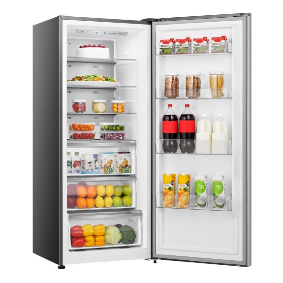 The Hisense 384 Litre Hybrid Fridge/Freezer offers flexible storage and modern performance, making it an ideal solution for changing household needs. Designed with a versatile hybrid configuration, it can be easily set as a fridge or freezer to suit your storage requirements. Metal Tech Cooling ensures even temperature distribution for improved food preservation, while the frost-free design eliminates the need for manual defrosting. Electronic touch controls allow precise temperature management, supported by a door alarm for added convenience and peace of mind. Featuring a sleek pure flat design with a reversible door, it complements contemporary kitchens and storage spaces. With dimensions of 1720 x 700 x 750 mm (HxWxD), this Hisense appliance combines generous capacity, adaptable functionality, and clean modern styling.