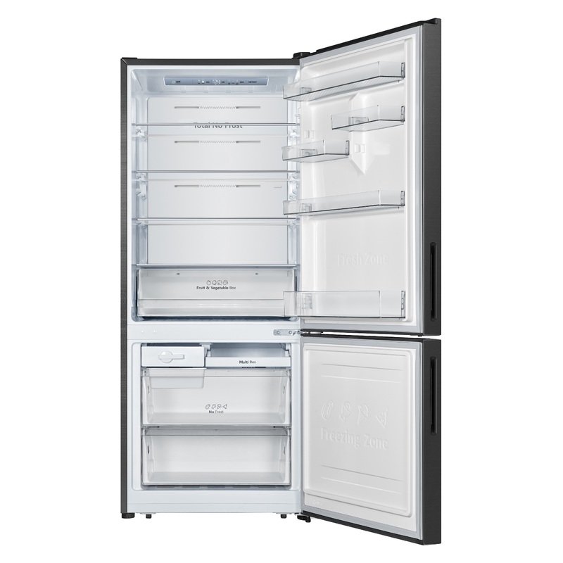 The Hisense 417L PureFlat Bottom Mount Fridge in black is a stylish and intelligently designed appliance, perfect for modern kitchens seeking both form and function. Its sleek PureFlat design delivers a contemporary, built-in look with clean lines and a refined finish. With a reversible door, you have the flexibility to configure the fridge to suit your space and layout. The handy twist ice maker ensures ice is always within easy reach, ideal for entertaining or everyday use. Inverter technology powers the fridge efficiently and quietly, maintaining consistent temperatures while helping reduce energy consumption and extend the appliance?s lifespan. Electronic touch controls allow for precise temperature adjustments at your fingertips, while the door alarm adds peace of mind by alerting you if the door is accidentally left open. Combining smart features with an elegant matte black exterior, this 417-litre bottom mount fridge is as practical as it is sophisticated.
