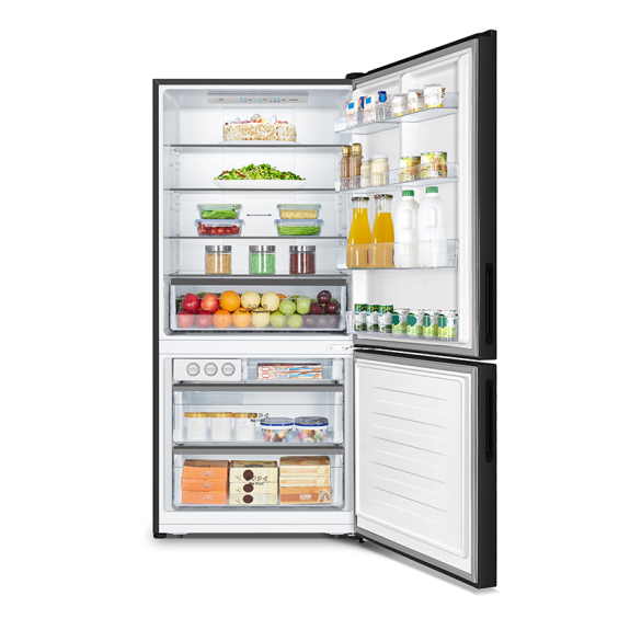 In modern black steel, this bottom mount refrigerator from Hisense is packed with advanced features. On top of electronic temperature control, Holiday Powersave functions, and touch control panels - it has Australia's highest energy star rating. The 6-star rating proves this fridge is engineered for efficiency. With easy slide drawers, adjustable shelves and reversible doors, this model also offers unmatched convenience.