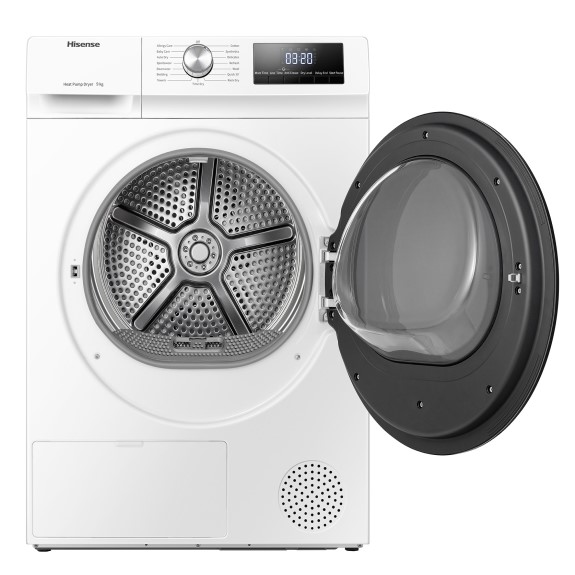 Effective and efficient, enjoy smarter drying of your laundry with Hisense?s 9kg Heat Pump Dryer. Perfect for larger households, dry any load with the 15 drying cycles which include Allergy Care, Baby Care, Bedding, Cotton and Wool. Short on time? The 30 Minute Power Dry dries light loads of half a kilo in just 30 minutes so you can be out the door, faster. Enjoy perfectly dry results as this Hisense dryer dries using humidity and temperature sensors. Powered by PureJet airflow technology, this dryer can tackle even the most difficult of drying tasks and its gentler on your clothes, delivering less shrinkage and tangle. Confidently dry even non-tumble items such as shoes, plush toys, and delicates with the dryer?s drying rack. As you dry your family?s garments, reduce your environment impact as this Hisense dryer is rated with an efficient 9-Star Energy Rating.