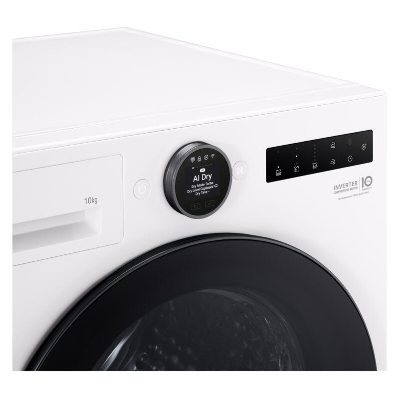 The LG Series 9 AI Heat Pump Dryer in Essense White combines sophisticated design with intelligent drying technology to deliver outstanding fabric care and efficiency. Powered by advanced heat pump technology and an energy-efficient inverter motor, it dries clothes gently at lower temperatures while helping to reduce energy consumption. The AI Dry function uses load sensing to automatically detect fabric types and moisture levels, adjusting settings for precise, tailored results every time. An easy-to-read LCD display provides clear control over cycles, while the delay timer offers added flexibility to fit drying around busy schedules. With ThinQ connectivity, users can conveniently monitor and control the dryer remotely, adding a new level of smart functionality to the laundry routine. The auto cleaning condenser helps maintain optimal performance without the need for frequent manual cleaning, ensuring long-term reliability. Designed to care for clothes while simplifying everyday use, it?s a modern and efficient solution for any home.