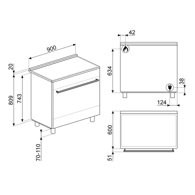 The Smeg 90cm Dual Fuel Freestanding Cooker in Matte Black offers a blend of sophistication and high performance. The Thermoseal Oven ensures perfect cooking conditions, while the Vapour Clean feature makes maintenance effortless. With a generous 126-liter capacity, the oven is ideal for large meals and gatherings. The touch control clock provides easy and precise control over cooking times. The triple glazed door enhances energy efficiency and safety by keeping heat contained within the oven. This cooker combines sleek design with advanced features, making it a stylish and functional addition to any contemporary kitchen.