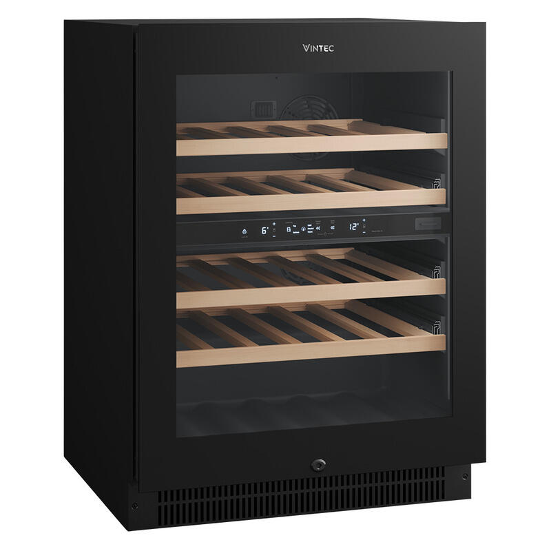 Store and serve your wines like a true connoisseur with the Vintec 40 Bottle Dual Zone Wine Fridge Cabinet ? Black. Designed to accommodate up to 40 bottles, this premium wine cabinet uses a quiet inverter compressor to deliver consistent cooling without disruptive noise or vibrations. The dual-zone layout means you can store reds and whites at their individual ideal temperatures simultaneously, ensuring every bottle is ready to pour. With intuitive touch controls and dimmable LED lighting, it's easy to monitor and showcase your collection without compromising the quality of your wine. The fully-extendable 3-tier telescopic rails make accessing your favourite bottles effortless, while the reversible door provides flexible installation options. Perfect for modern kitchens or entertainment areas, this sleek black wine fridge pairs timeless style with advanced functionality. Backed by a five-year compressor warranty, it's the perfect solution for anyone who takes their wine seriously.