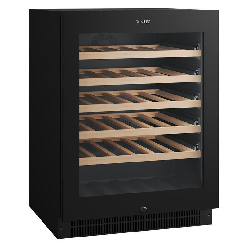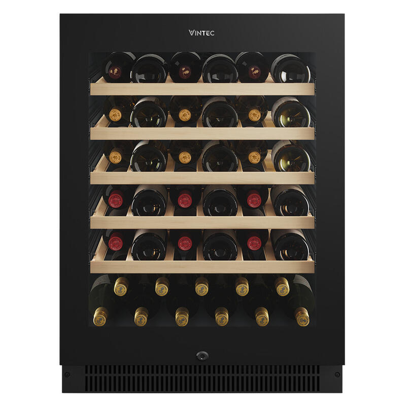 Perfect for dedicated collectors or casual entertainers, the Vintec 41 Bottle Single Zone Wine Fridge Cabinet in black offers a refined and dependable way to cellar or serve your wine. Designed with a quiet inverter compressor, it maintains a stable, low-vibration environment that?s essential for preserving wine integrity over time. The single-zone cooling allows precise temperature control, whether you're storing for the long term or chilling bottles for immediate enjoyment. Intuitive touch controls make adjustments simple, while diffused LED lighting gently showcases your collection without affecting its quality. With fully-extendable 3-tier telescopic rails, accessing your bottles is effortless, even when the fridge is fully stocked. The minimalist black finish and reversible door offer seamless integration into a variety of modern settings, from kitchen cabinetry to standalone bar areas. Supported by a five-year compressor warranty, this Vintec wine cabinet is a stylish and high-performing choice for wine lovers who value precision, elegance and quiet efficiency.