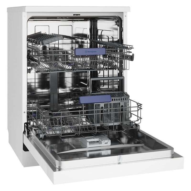 Simplify kitchen clean-up with the Westinghouse 14 Place Setting Freestanding Dishwasher, finished in crisp white to complement any modern home. Offering generous capacity for 14 place settings, it?s ideal for handling everything from everyday dining to weekend entertaining. Six versatile wash programs give you the flexibility to tackle any load, while the innovative Sensor Wash automatically detects soil levels and adjusts for optimal efficiency. The Fast Dry option ensures dishes are ready to use sooner, while the half-load feature makes smaller washes eco-friendly and economical. Designed for convenience, the adjustable upper basket provides room for bulky cookware and tall glasses. Safety is built in too, with AquaStop technology to guard against leaks. Practical, efficient, and stylish, this Westinghouse dishwasher takes the effort out of cleaning, giving you more time to enjoy meals with family and friends. Reliable performance and thoughtful features make it a smart choice for any busy household.