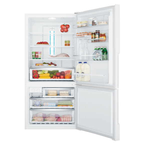 Featuring pocket handles and a large 496L capacity, this family sized fridge from Westinghouse will keep your kitchen looking ultra-modern. FreshSeal Crispers make it easy to keep your fruits and veggies fresher for longer as they prevent moisture loss and control the humidity level of the crisper, while the Spill-safe glass shelves contain spilt liquid to one shelf, making clean up quicker and easier. Keep things running smoothly with the telescopic runners fitted to each freezer drawer, and the flat, streamlined doors keep your kitchen looking clean and stylish.