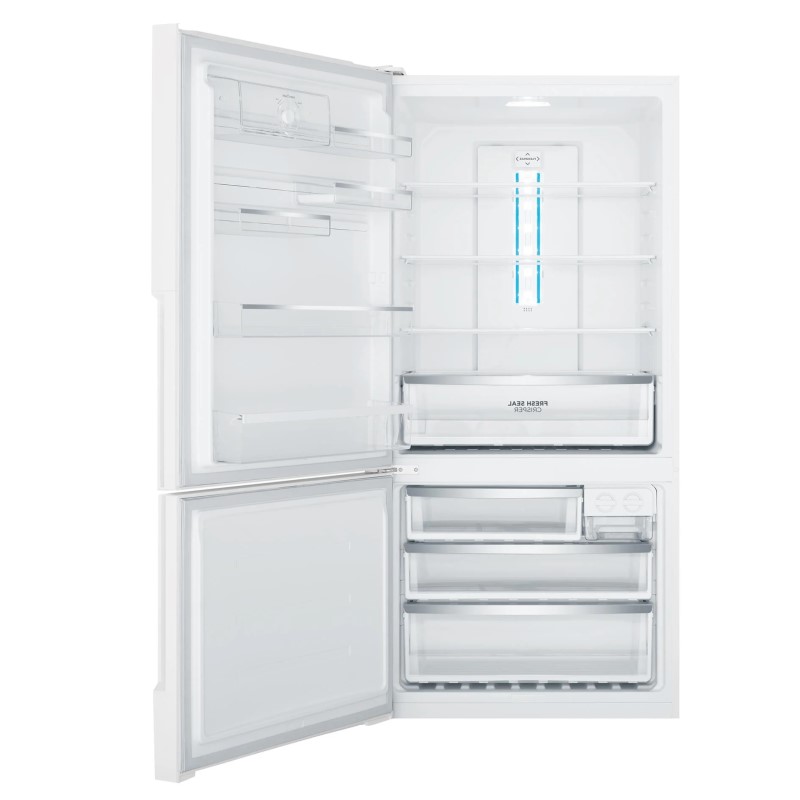 The Westinghouse 496 Litre Bottom Mount Refrigerator ? White is designed to combine style, practicality, and everyday convenience. With its generous 496L capacity, it?s perfect for busy households needing plenty of storage space. Featuring SpillSafe glass shelves, this fridge makes cleaning simple by containing accidental spills while offering durable support for groceries. The Multi-Flow Air Delivery System ensures consistent cooling, helping food stay fresher for longer, while the Twist Ice & Serve dispenser provides easy access to ice whenever needed. Its flat door design with recessed pocket handles delivers a sleek, modern look that fits seamlessly into any kitchen. Finished in classic white, this refrigerator offers a timeless appearance alongside everyday reliability. Measuring 1725mm (H) x 796mm (W) x 723mm (D), it strikes the perfect balance of capacity and style.