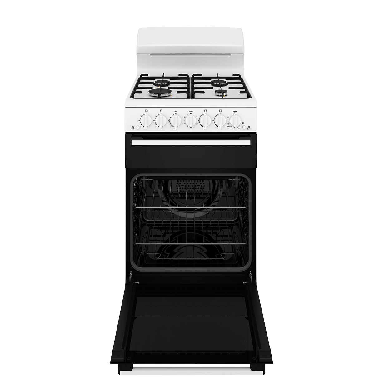 The Westinghouse 54cm Freestanding Gas Cooker + Grill in White is the perfect solution for versatile, family-friendly cooking. With a conventional gas oven and a handy separate grilling compartment, you can easily switch between baking, roasting, and grilling. The 80L oven and 37L grill capacity ensure ample space for family meals. The gas cooktop offers fast and efficient cooking, while the FamilySafe Flame Failure Device provides added safety by automatically cutting off gas if the flame goes out. Designed for easy maintenance, the oven features easy clean formed shelf supports. Available for both natural gas and LPG, with an LP Conversion Kit included, this freestanding cooker is the ideal choice for any kitchen.
