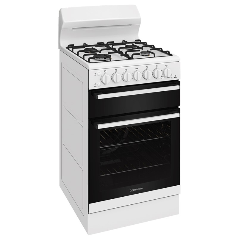 The Westinghouse 54cm Freestanding Gas Oven + Grill in White offers versatile cooking options, perfect for busy households. Featuring a spacious 80L fan bake and conventional oven, along with a separate 37L grilling compartment, this cooker provides ample space for all your culinary needs. The gas cooktop includes a powerful 14MJ/h triple ring wok burner, delivering high heat for stir-frying and fast cooking. For added safety, the FamilySafe Flame Failure Device ensures gas is automatically cut off if the flame goes out. With easy clean formed shelf supports, maintaining the oven is simple and convenient, making this freestanding gas oven and grill both practical and reliable.