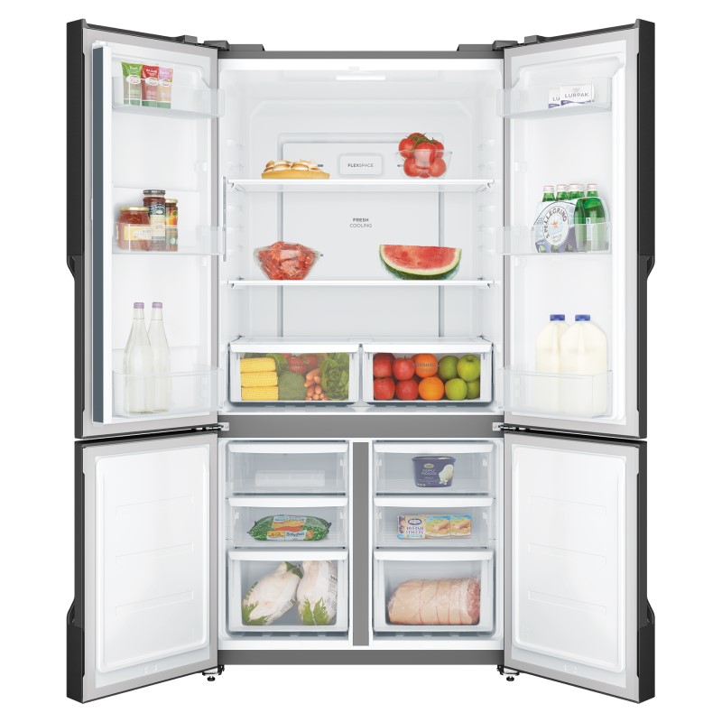 The Westinghouse 564L Quad Door Refrigerator in Matte Black seamlessly blends modern design with functionality to elevate your kitchen. Its sleek, flat doors and discreet pocket handles give it a sophisticated look, while the spacious 564L capacity ensures ample storage space. The FreshSeal crisper, with manual humidity control, helps maintain ideal conditions to keep fruits and vegetables fresh longer. Complete with a sphere ice tray for perfectly shaped ice, this refrigerator is both stylish and practical. Its 4-star energy rating ensures efficient performance, making it a smart, eco-friendly choice for your home.
