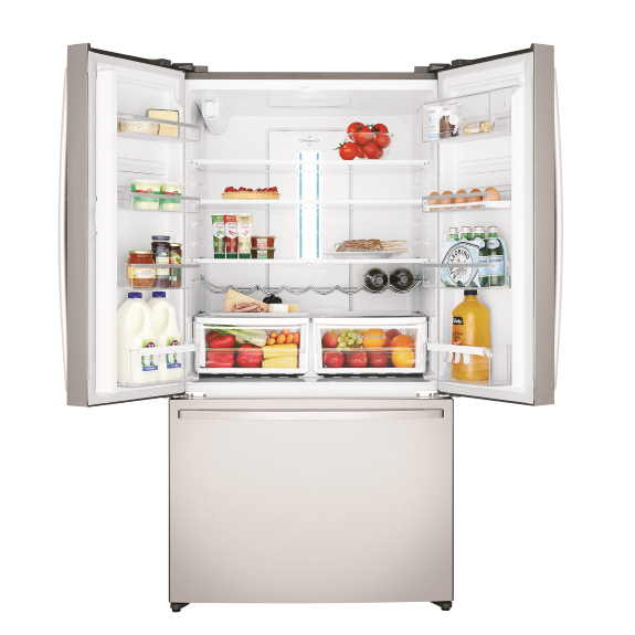 The 605L Stainless Steel French Door Refrigerator is the latest innovation from Westinghouse! This fridge is designed to fit neatly into an Australian 90cm cavity allowing maximum storage for fresh produce. The French door design also allows you to conserve kitchen space. This fridge is packed with features including a slimline in-door water and ice dispenser, a fingerprint resistant stainless- steel finish, FlexSpace interiors, Spillsafe glass shelving, self-close drawer & a quick chill function.