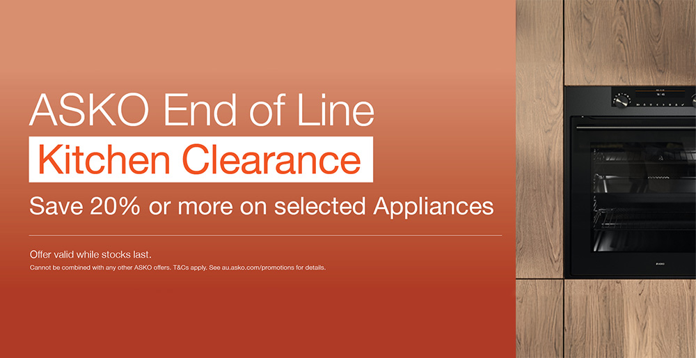 Save 20% or more on select ASKO kitchen appliances from 18th December, strictly while stocks last. This offer cannot be used in conjunction with any other ASKO offers. T&C’s apply.