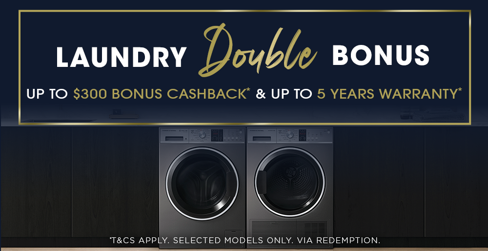 Get up to $300 cashback and enjoy up to 5-year warranty when you purchase select premium laundry appliances. Bonus value combines cashback and extended warranty on eligible models—check product details for availability.