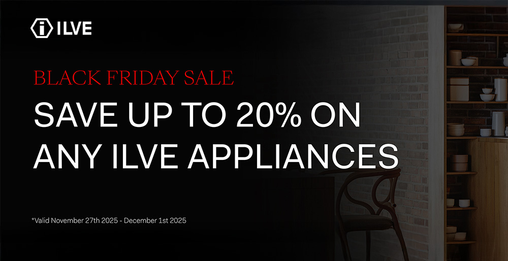 Save 20% on select ILVE models for 4 days only. Offer available from 27 November to 1 December, while stocks last. Selected models only. T&Cs apply.